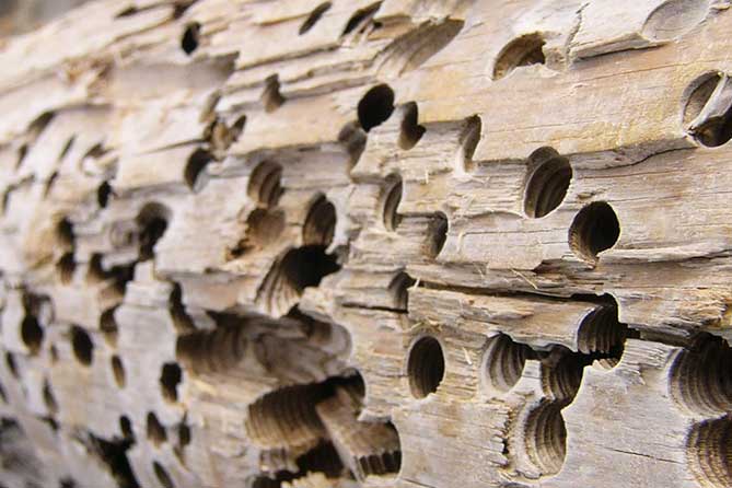 Las carcomas son larvas que perforan la madera (vigas, muebles, etc.) en la que construye galerías y la dañan, dejando un característico polvo o serrín.